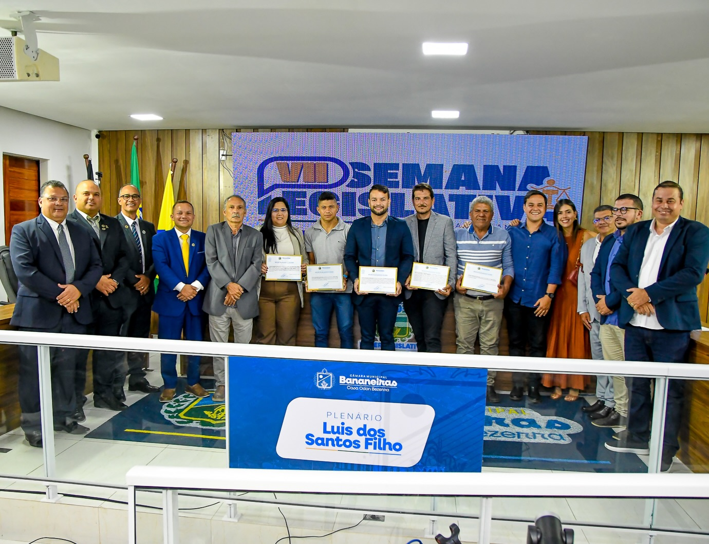 A Câmara Municipal de Bananeiras realizou, durante a VII Semana Legislativa da Casa Odon Bezerra, uma série de homenagens por meio de moções de aplausos, reconhecendo cidadãos e instituições que têm contribuído para o desenvolvimento social, econômico e cultural do município e da região. Os trabalhos legislativos foram conduzidos pelo presidente da Câmara, Marcelo Bezerra, que esteve à frente das atividades da semana.