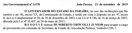 A tão esperada nomeação do deputado estadual Trócolli Júnior (PMDB) para compor o governo Ricardo Coutinho (PSB) finalmente aconteceu.