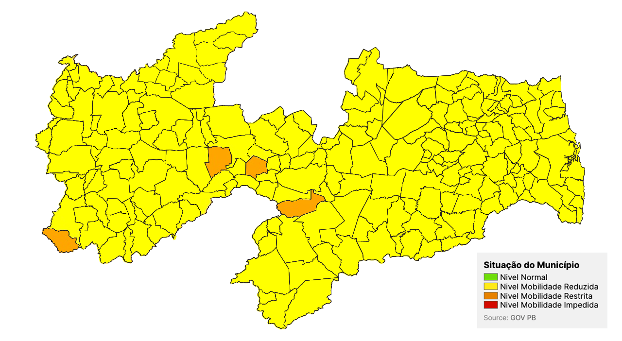PB repete mesmo cenário de pandemia na 35ª avaliação do Novo Normal e apenas Santa Inês e Cacimba de Areia estão no laranja