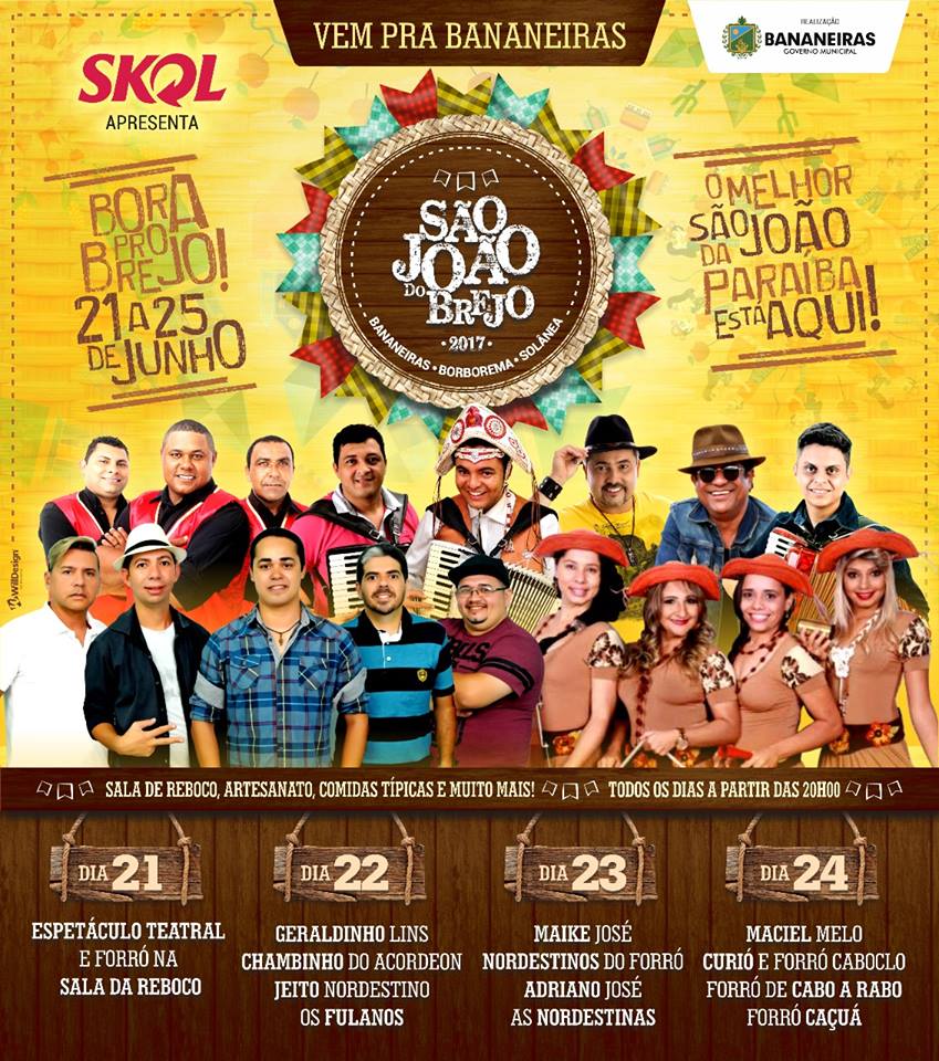 Maior festa da cultura nordestina, o São João tem a cara e o som de Geraldinho Lins, que não poderia ficar de fora dos festejos paraibanos. Nesta quinta-feira (22), o artista canta no palco principal do São João da cidade de Bananeiras, no Brejo paraibano. No repertório do artista, uma série de antigos e novos sucessos de sua carreira (“Amor de Sertão” e o lançamento “Um por de sol de sentimento”), além de clássicos do forró e canções da MPB (“Girassol” e “Tudo azul”) adaptadas para o ritmo maior da festa.