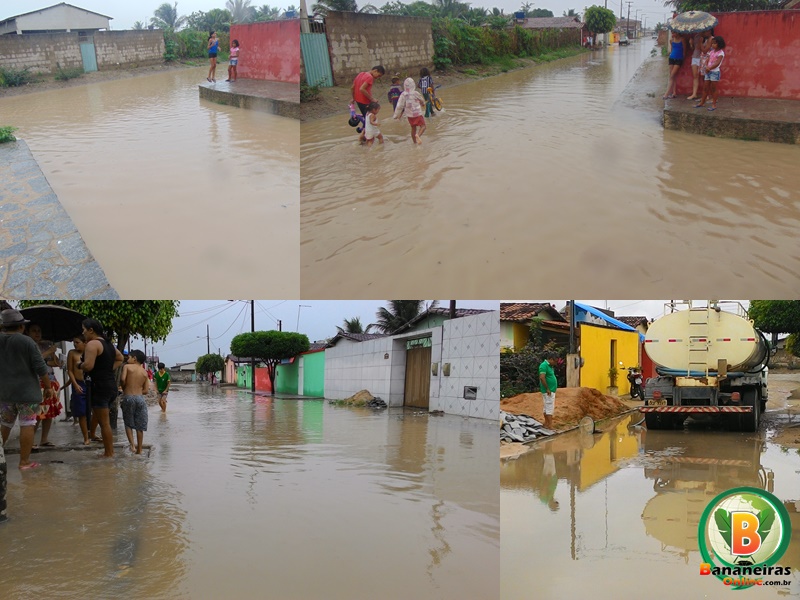 Ruas do conjunto Augusto Bezerra, em Bananeiras, ficaram alagadas no último sábado (23) em razão da forte chuva que caiu na Região do Brejo paraibano.